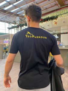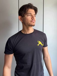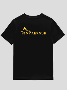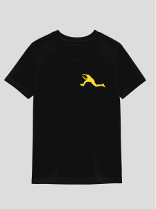 Grafica gialla su nero: pulita, netta e pensata per durare lavaggio dopo lavaggio.